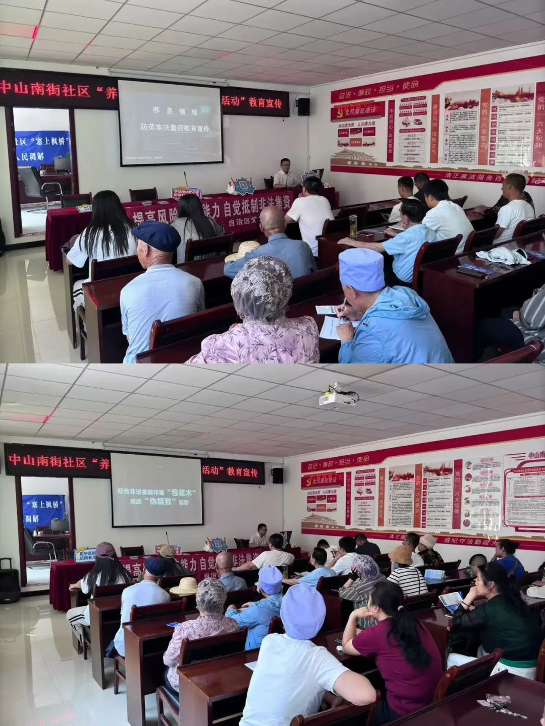 本次活動通過現(xiàn)場宣講形式開展,中心工作人員向社區(qū)居民詳細介紹了非法集資的概念,養(yǎng)老領(lǐng)域非法集資的表現(xiàn)形式以及對非法集資的防范建議,組織社區(qū)居民集中觀看了養(yǎng)老領(lǐng)域非法集資相關(guān)典型案例。以知識宣講和觀看視頻相結(jié)合的形式,讓社區(qū)居民了解、熟悉非法集資的表現(xiàn)形式和社會危害,加強社區(qū)居民對非法集資、養(yǎng)老詐騙等非法金融活動危害的了解,增強居民自我保護意識,引導廣大社區(qū)居民提升金融知識儲備和風險防范意識。