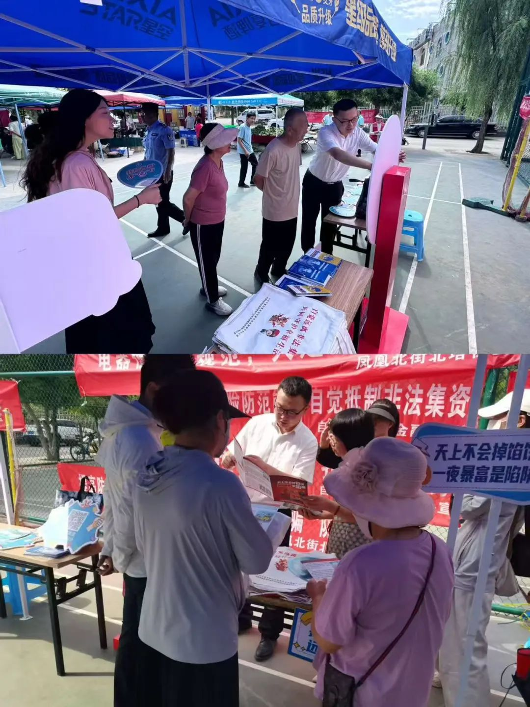 活動(dòng)現(xiàn)場,中心聯(lián)合社區(qū)工作人員充分發(fā)揮現(xiàn)場宣傳陣地作用,通過懸掛宣傳橫幅、口號(hào)、海報(bào)等內(nèi)容,以社區(qū)小廣場為中心,設(shè)置宣傳導(dǎo)臺(tái)、發(fā)放宣傳手冊(cè),安排專人負(fù)責(zé)開展防非處非知識(shí)教育及咨詢解答,主動(dòng)向過往群眾普及如何識(shí)別及有效防范非法集資的相關(guān)知識(shí)?;顒?dòng)中,還設(shè)置了有獎(jiǎng)問答環(huán)節(jié),通過現(xiàn)場知識(shí)轉(zhuǎn)盤進(jìn)行答題互動(dòng),為參與的老年群眾詳細(xì)講解非法集資的危害和最新表現(xiàn)形式,告誡老年人警惕高收益風(fēng)險(xiǎn),不要相信高利的誘惑,謹(jǐn)慎對(duì)待突如其來的熱心人和陌生號(hào),守好自己的養(yǎng)老錢?;顒?dòng)現(xiàn)場群眾參與積極,現(xiàn)場氣氛熱烈,活動(dòng)內(nèi)容和形式獲得了參與群眾的一致好評(píng)。